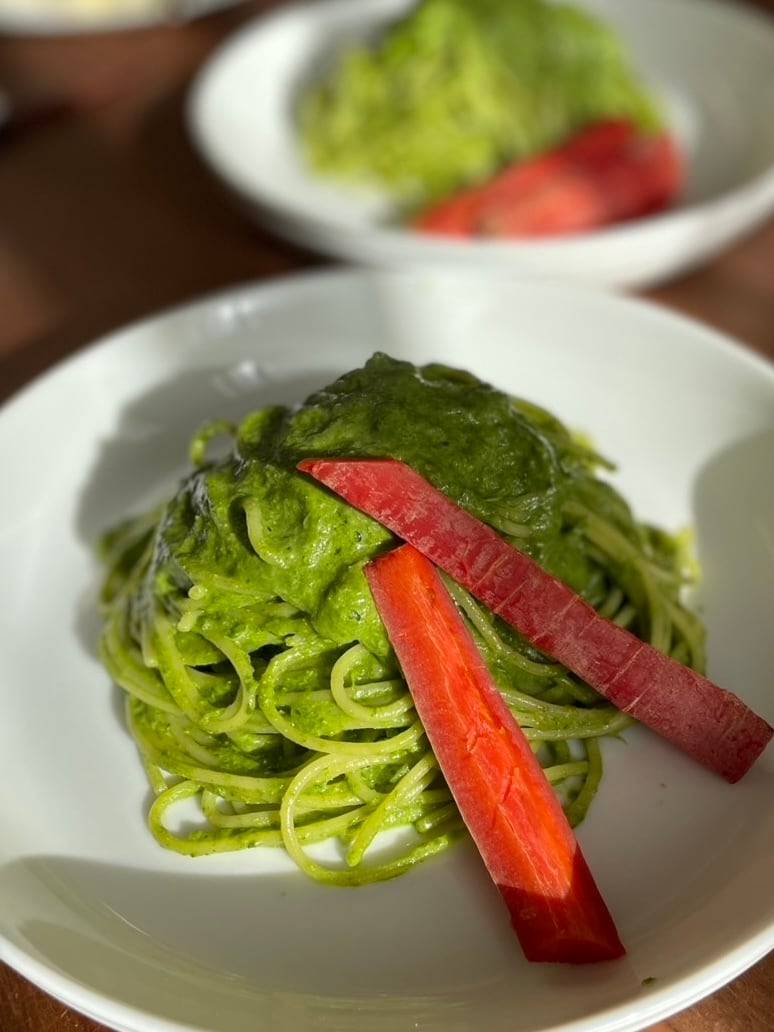 2. カリーノケールロッソ — 美しい赤色の葉が食卓に彩りを加えます。甘みが強く、料理に華やかなアクセントをもたらします。1-2枚。