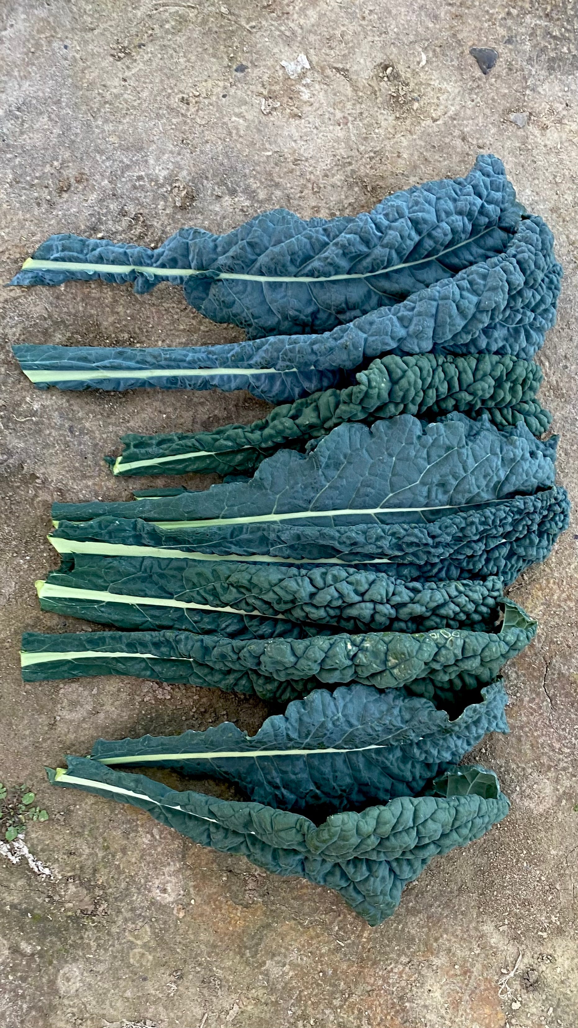 3. カーボロネロ — しっかりとした食感と深い味わいが特徴の黒系ケール。炒め物や煮込み料理にぴったりです。1枚。